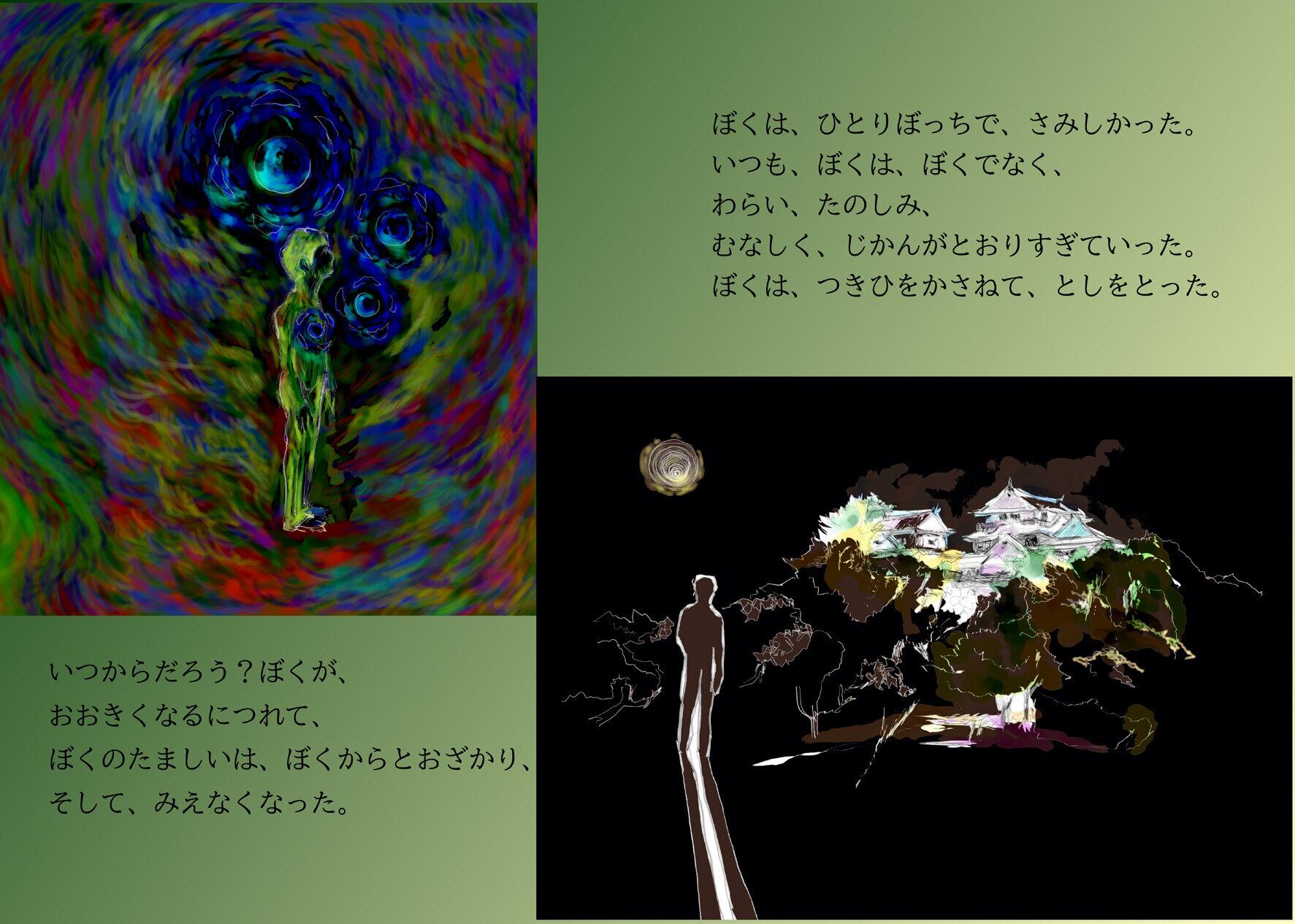 夢と安らぎ、優しさと希望をもてるような絵本を創作していきたいと願っております。