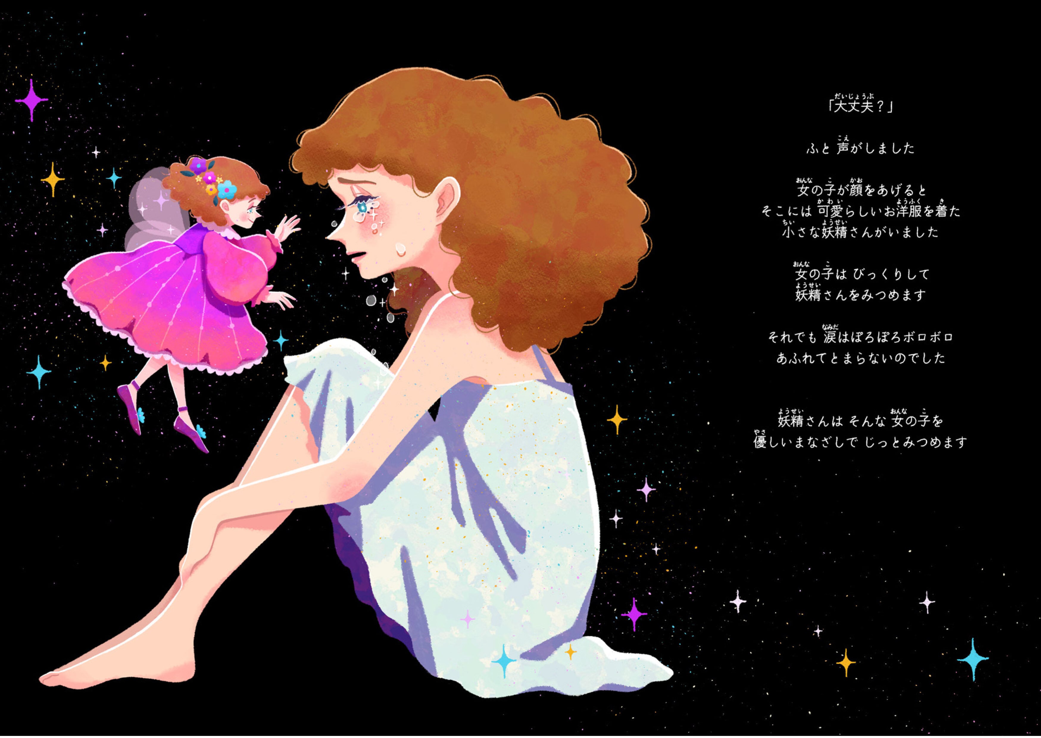 ひとりぼっちで泣いていた女の子が、妖精たちと出会い、少しずつ光を取り戻していく物語。