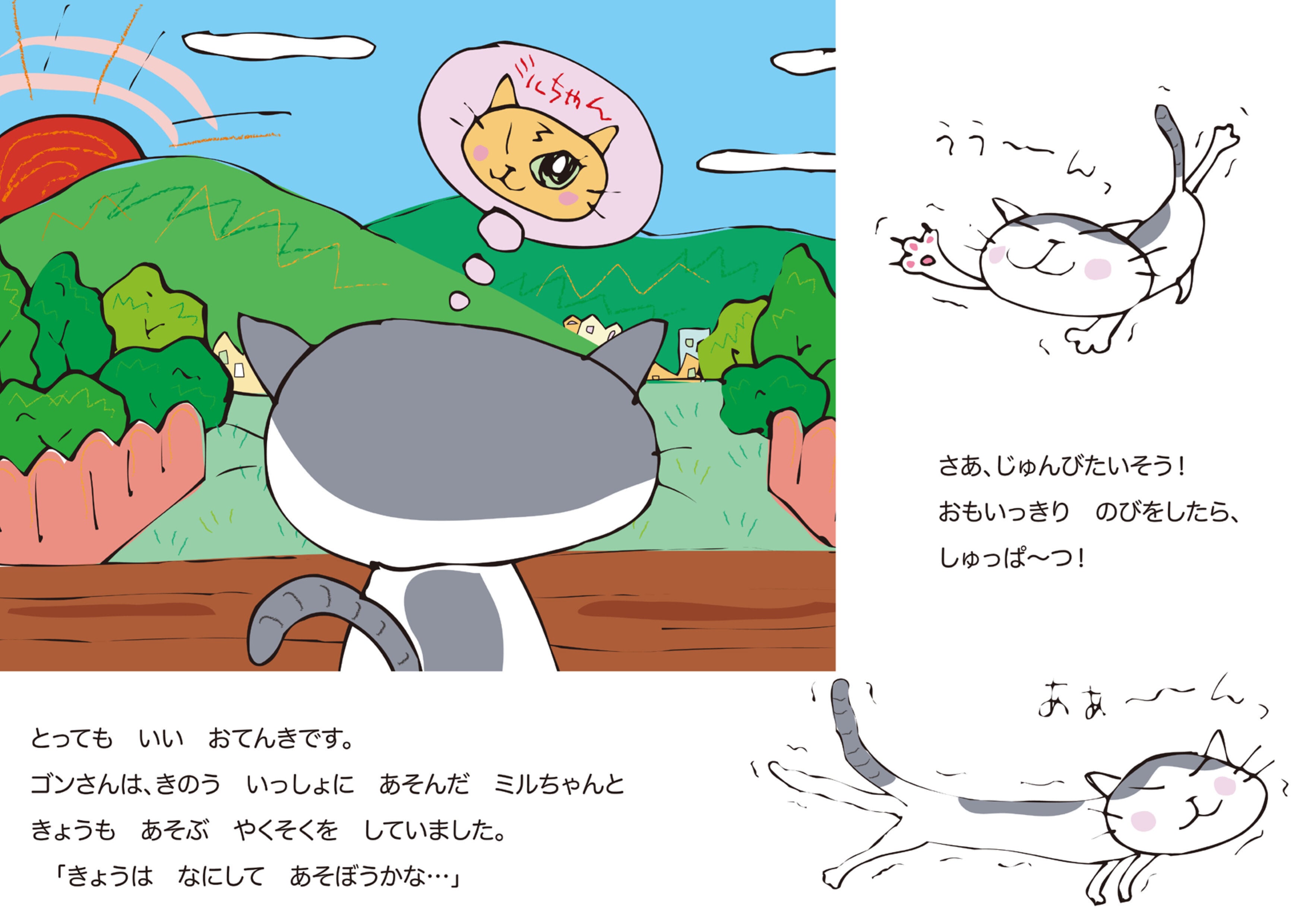 ねこのゴンさんとミルちゃんはとっても仲良しです。昨日もいっしょに遊びました。今日も遊ぶ約束をしていたゴンさんですが…約束の場所へ行くとちゅうで「ねこあるある」なできごとがつぎからつぎへと起こり…。さて、ゴンさんとミルちゃんはいっしょに遊ぶことができるのでしょうか?