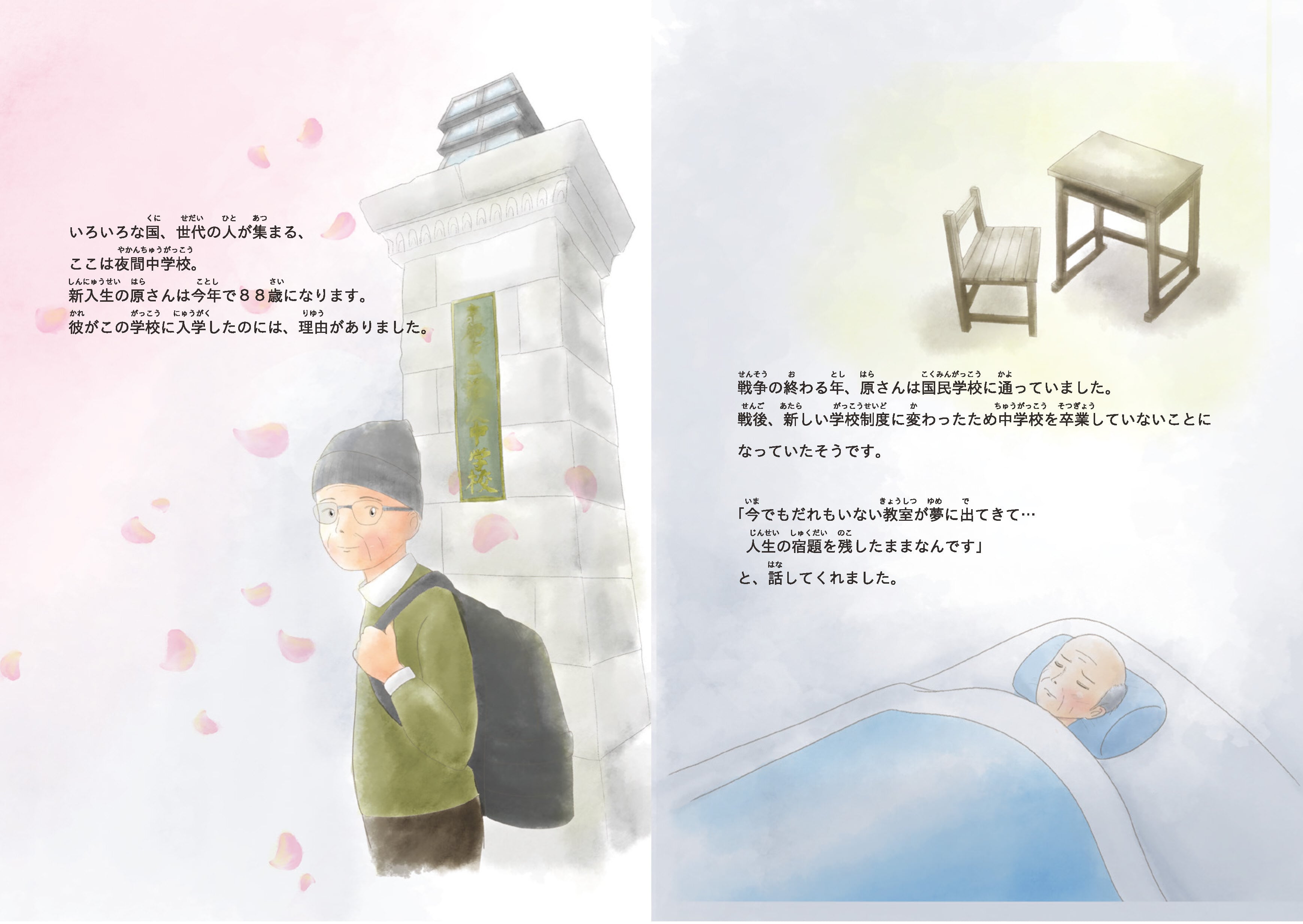 そこに学ぶ人たちの思いそして、今の夜間中学校の様子を多くの人に伝えたくて、手作り絵本として創作しました。