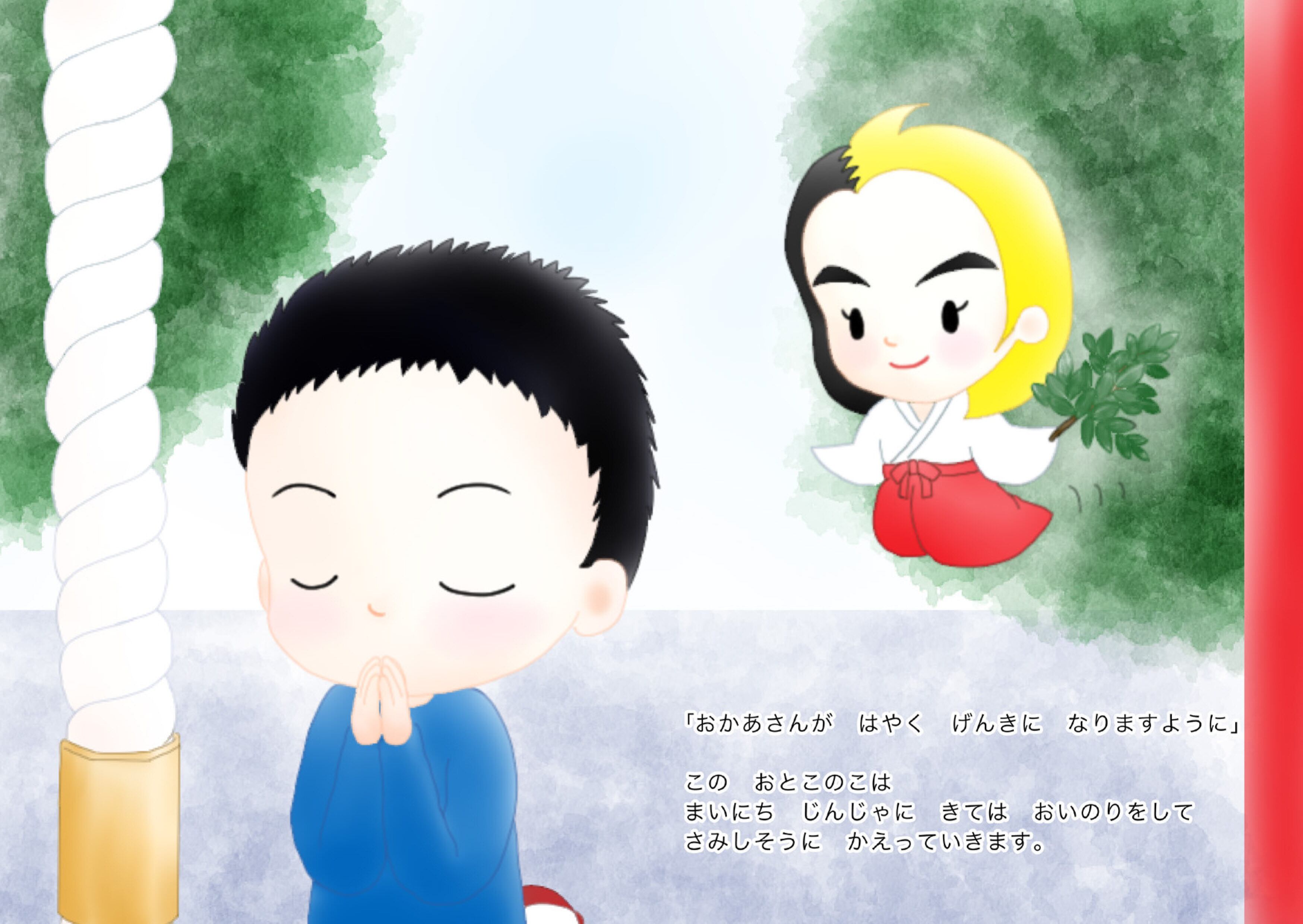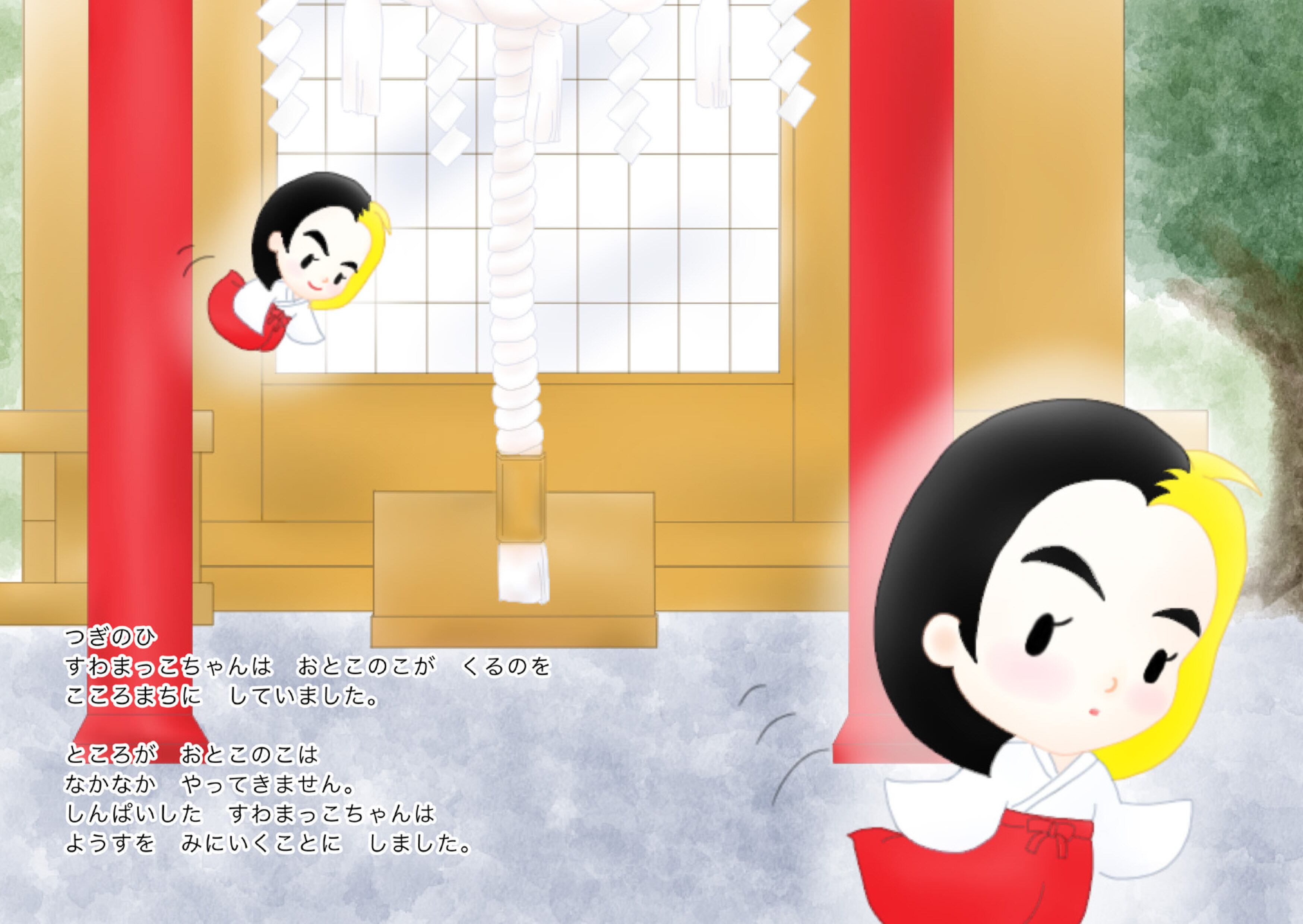 すわまっこちゃんという見習い神様は、毎日みんなのお願いを叶えながら過ごしています。そんなある日、男の子が神社にやってきて…